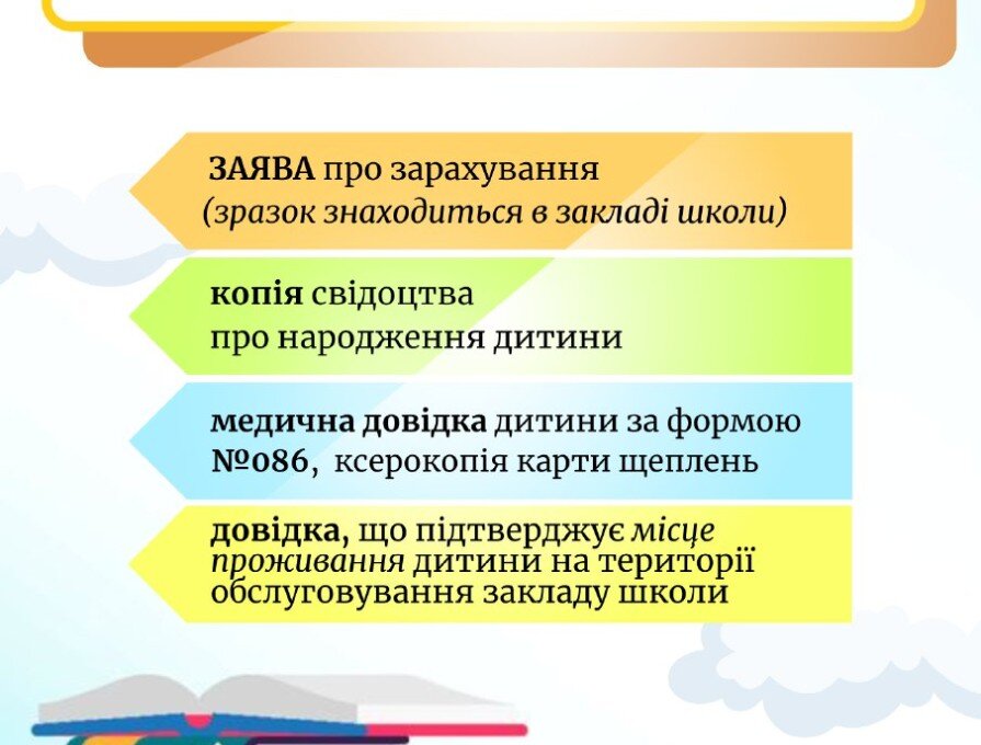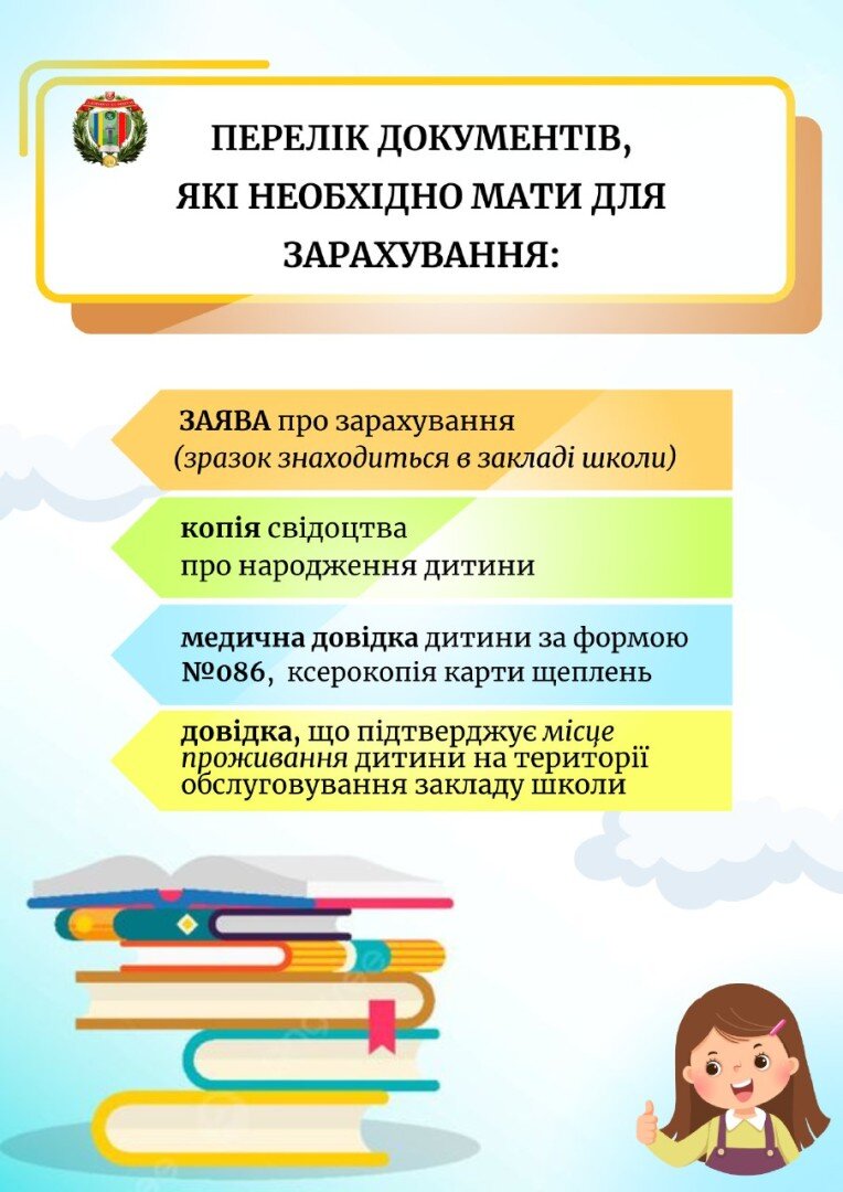 Для вступу достатньо заяви одного з батьків. Оригінали документів, зокрема медичні довідки, можна подати пізніше у встановлені школою терміни.